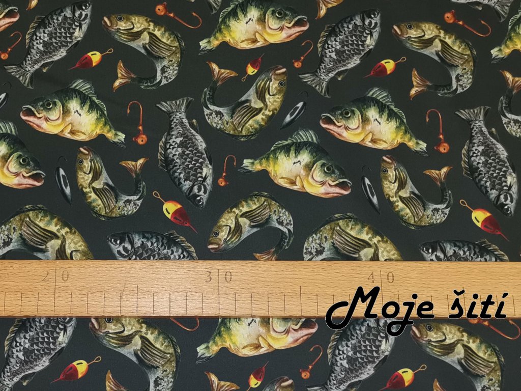 100% bavlněný úplet Ryby a háčky - digitální tisk