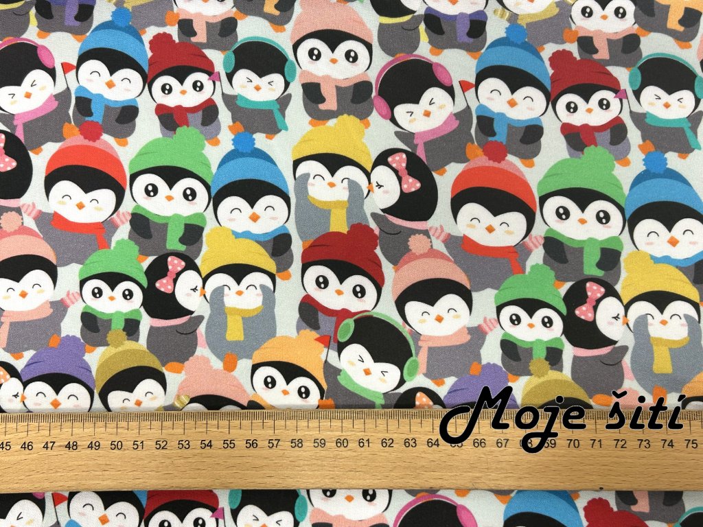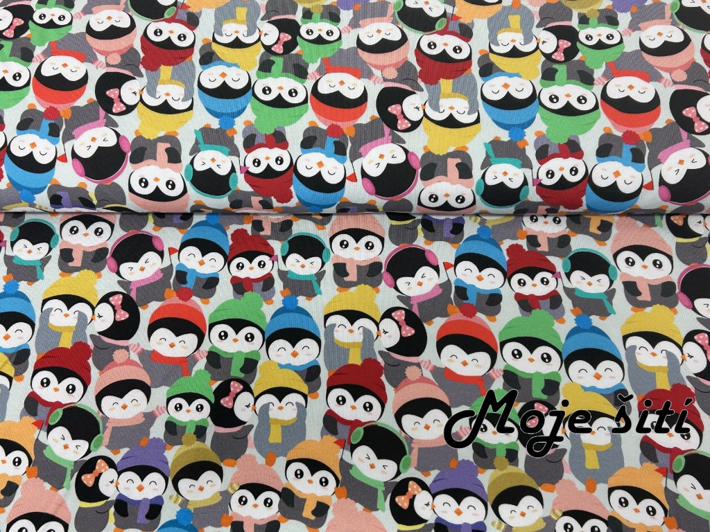 100% bavlněný úplet Tučňáci - digitální tisk