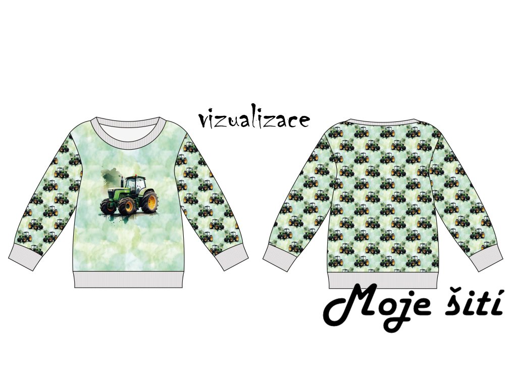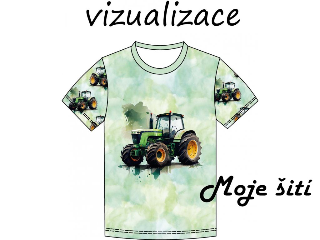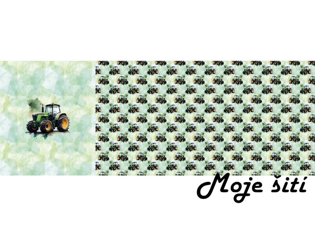 Dětský panel v plné šíři Akvarelový zelený traktůrek 60x165