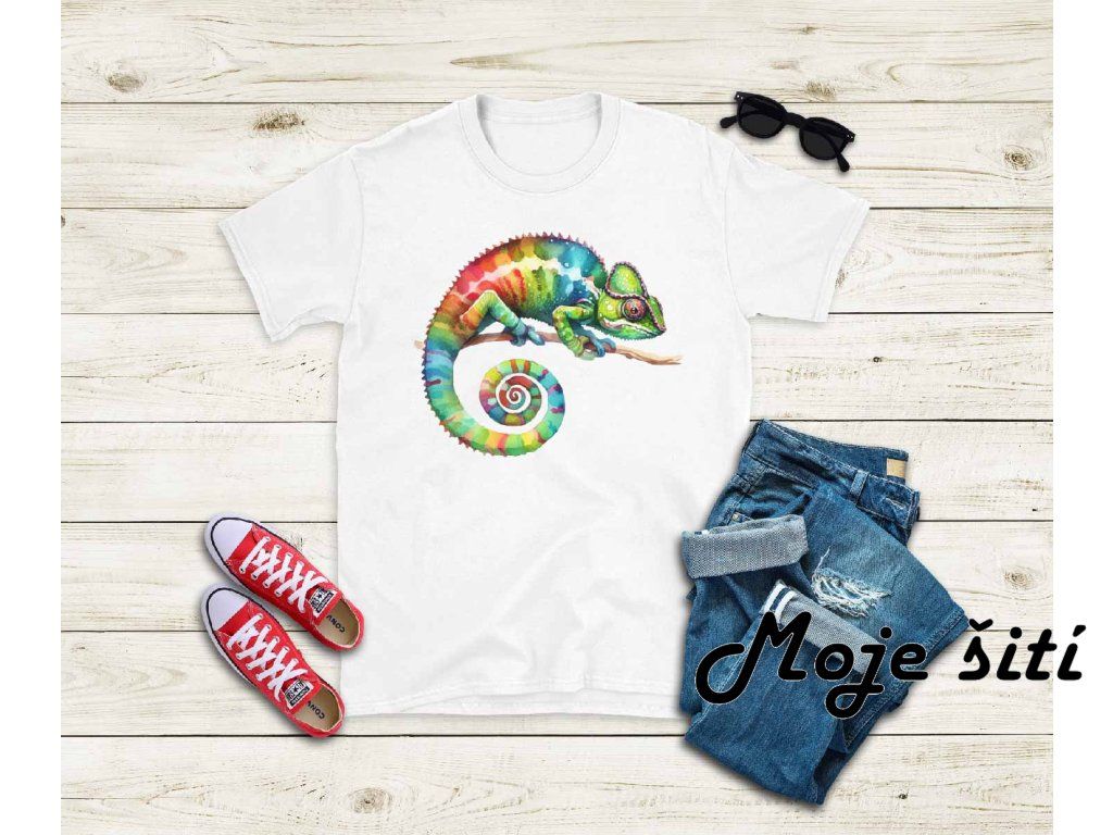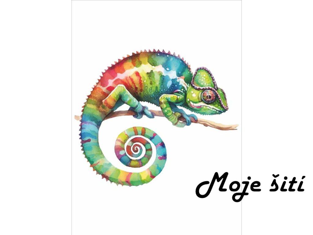 Barevné nažehlovací obrázky - Akvarelový duhový chameleon