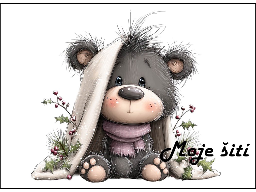 Barevné nažehlovací obrázky - Medvídek se šálou