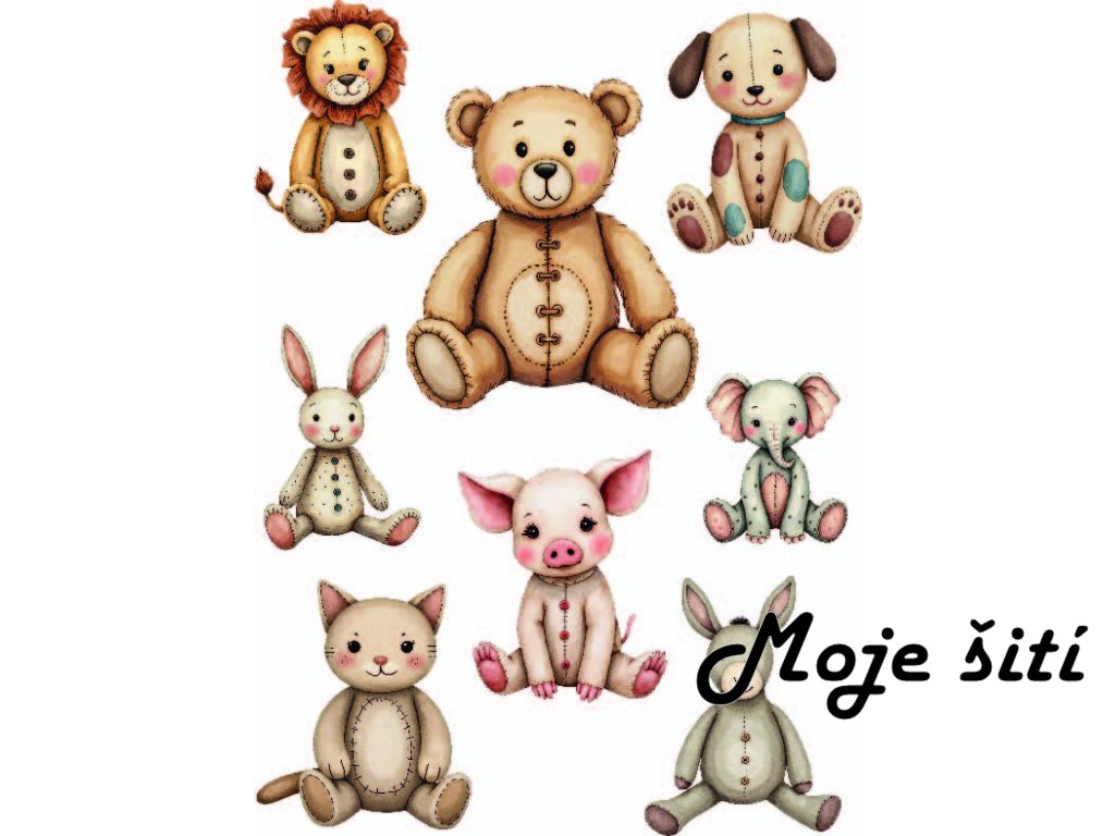 Barevné nažehlovací obrázky set - Vintage zvířátka