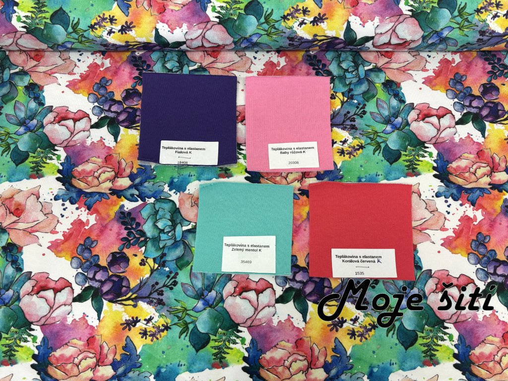 Teplákovina je vhodná na šití tepláků, mikin, šatů, mikinošatů, kardiganů atd.