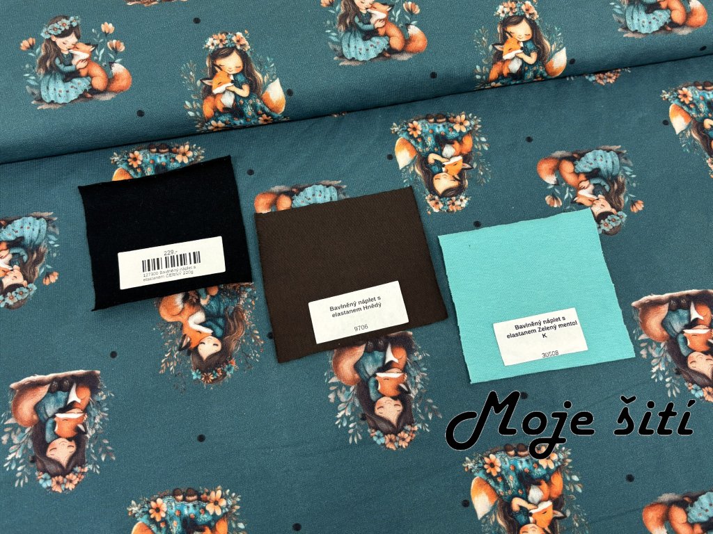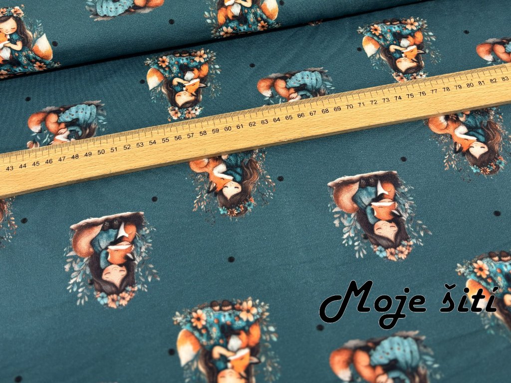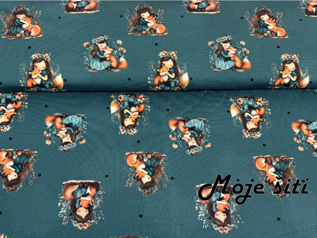 Bavlněná teplákovina - Dívka s liškou a puntíky II. JAKOST