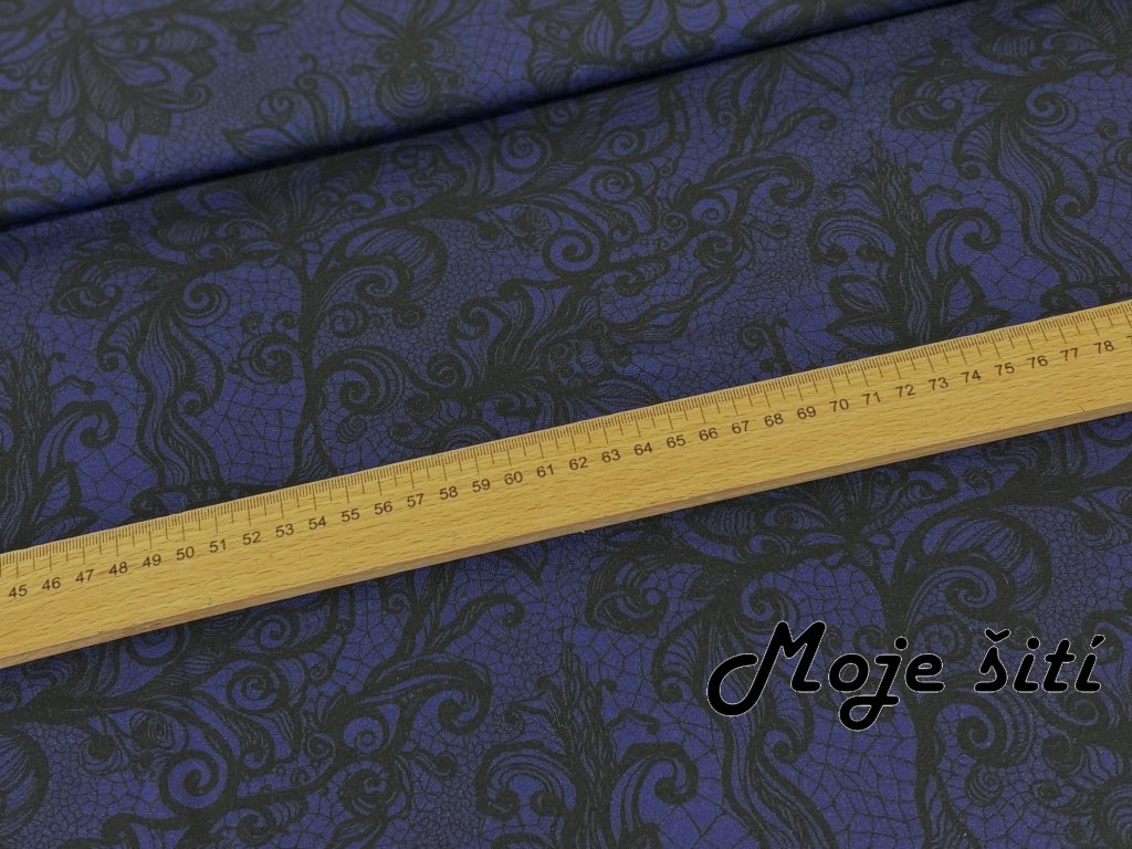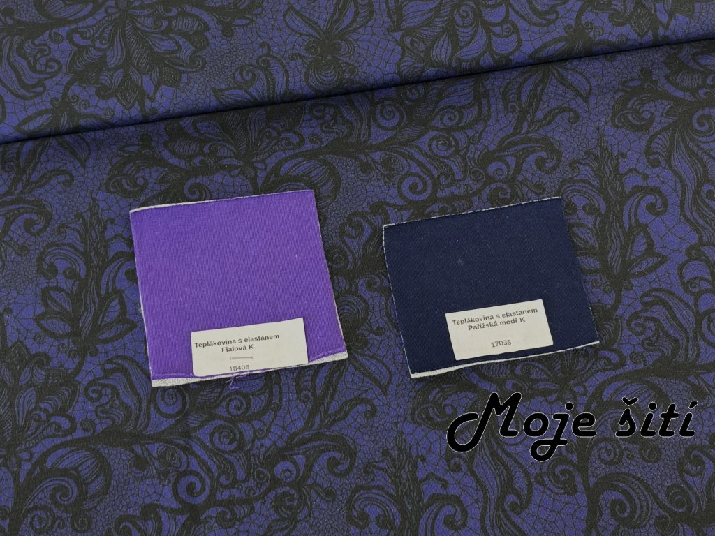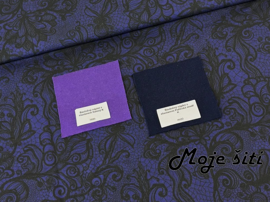 Bavlněná teplákovina - Krajka na fialovo-modré