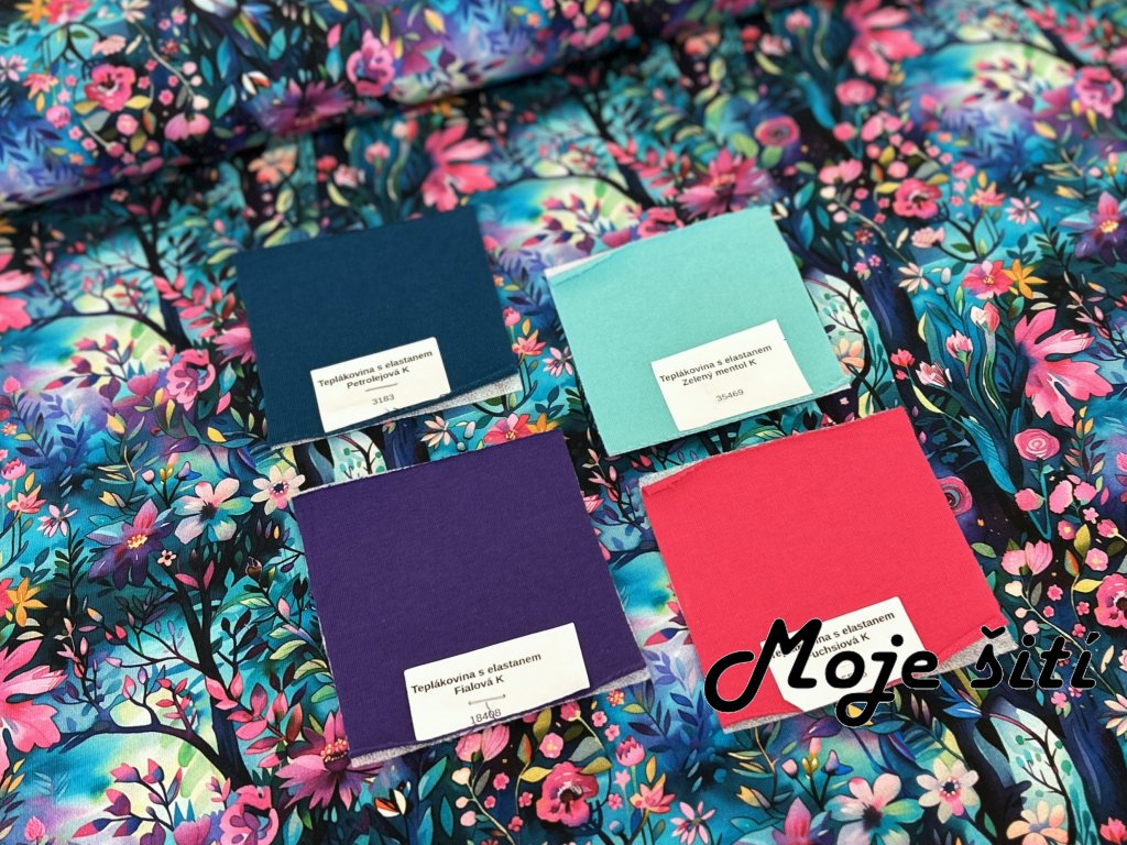 Teplákovina je vhodná na šití tepláků, mikin, šatů, mikinošatů, kardiganů atd.