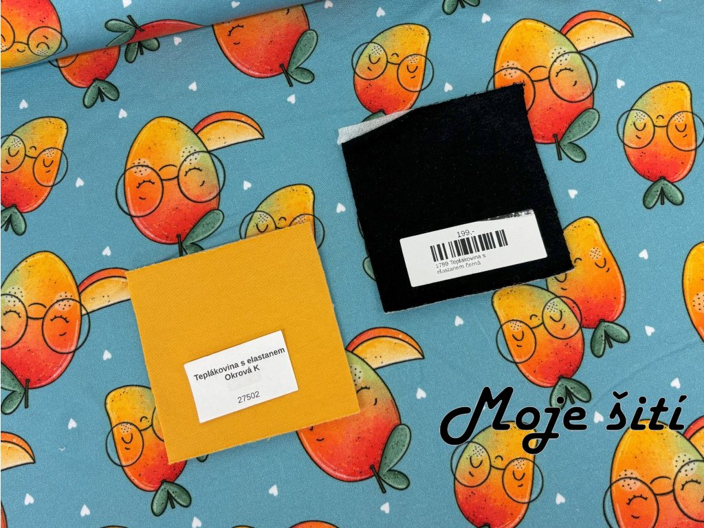 Opravdu krásná a velmi kvalitní bavlněná teplákovina s potiskem. Velmi příjemná na omak s velmi jasnými a intenzivními barvami. Tiskneme přímo u nás. :)