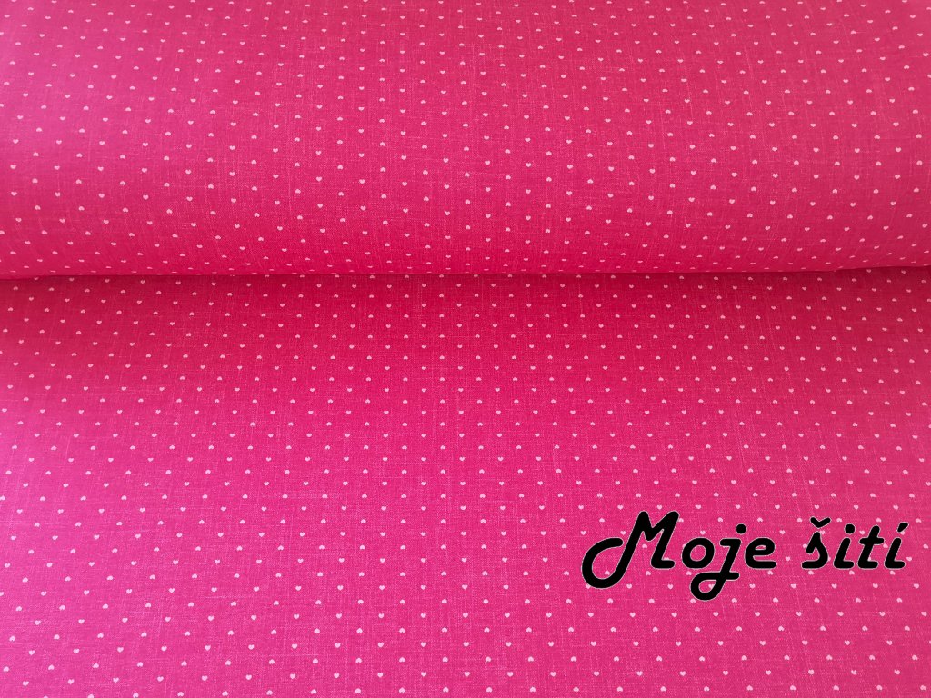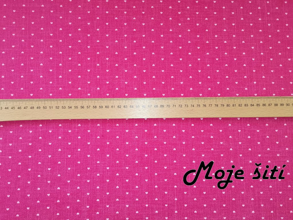 Bavlněná teplákovina - Srdíčka na fuchsiovém jeansu
