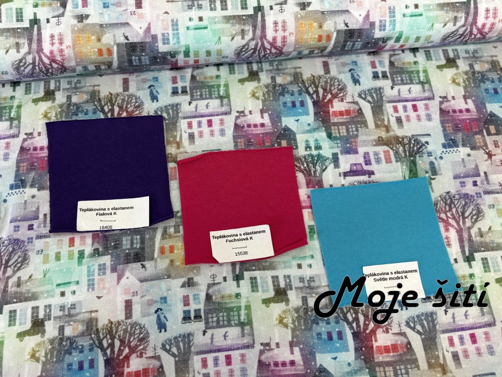 Teplákovina je vhodná na šití tepláků, mikin, šatů, mikinošatů, kardiganů atd.
