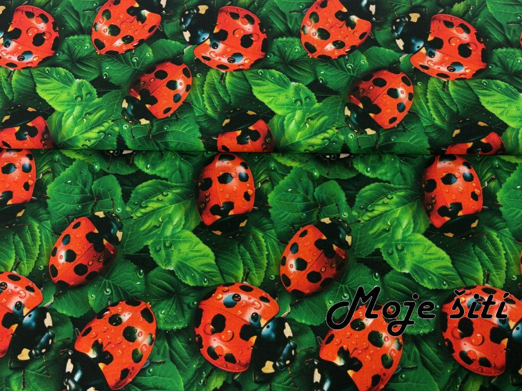 Bavlněné plátno Beruška a listy - digitální tisk II. JAKOST 1,1 m
