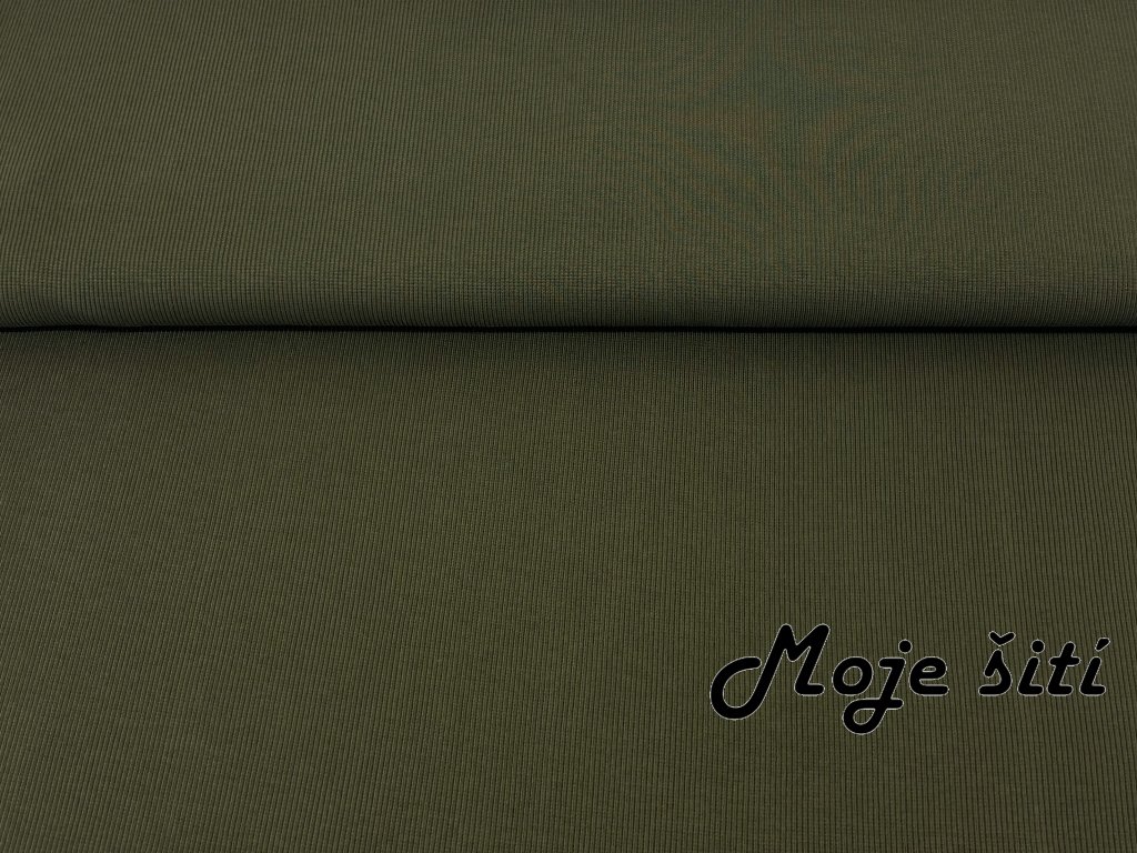 Bavlněný náplet s elastanem Khaki 2x2 žebro K