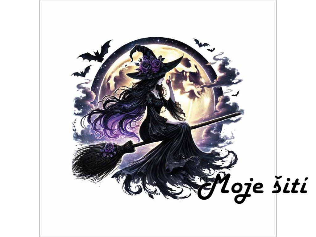 Bavlněný našívací štítek 3x3cm - Čarodějka s růžemi