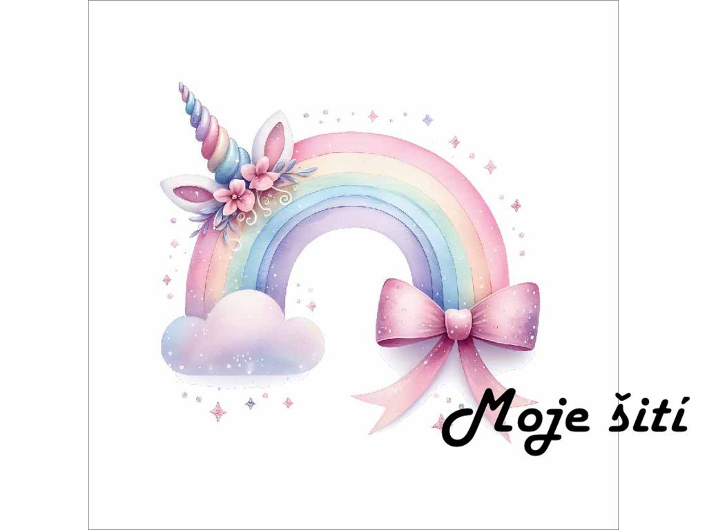 Bavlněný našívací štítek 3x3cm - Jednorožčí duha