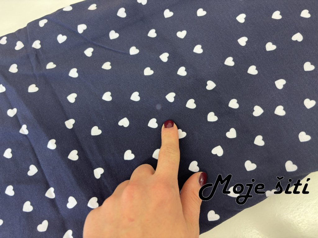 Bavlněný úplet s elastanem - Bílá srdíčka na tmavě modré 2 m 190g VADA