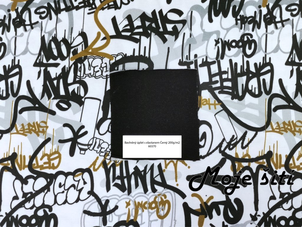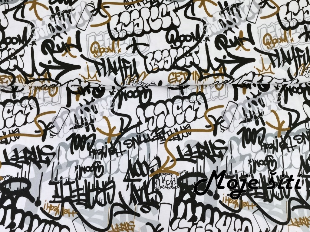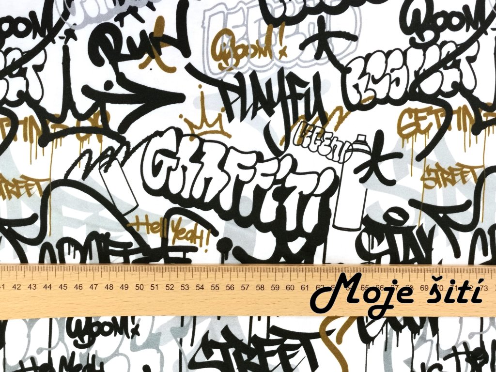 Bavlněný úplet s elastanem - Graffitti na bílé 190g