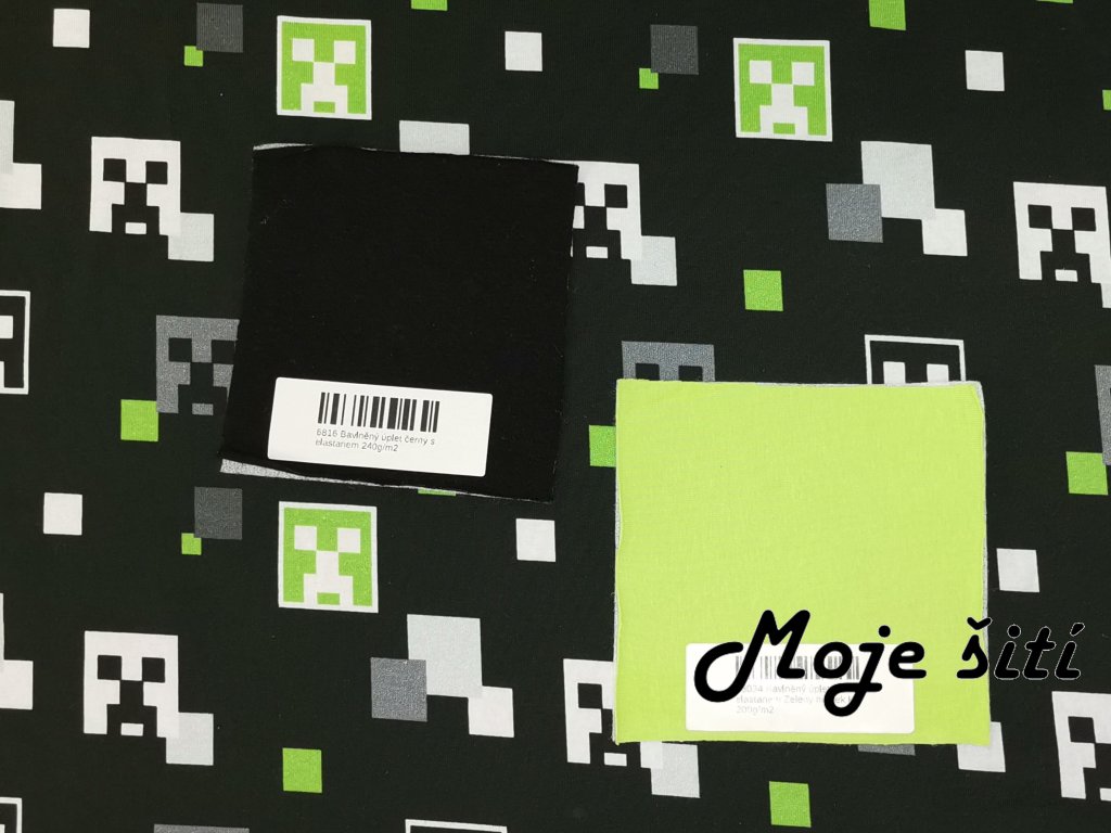 Bavlněný úplet s elastanem - Kostky na černé 190g