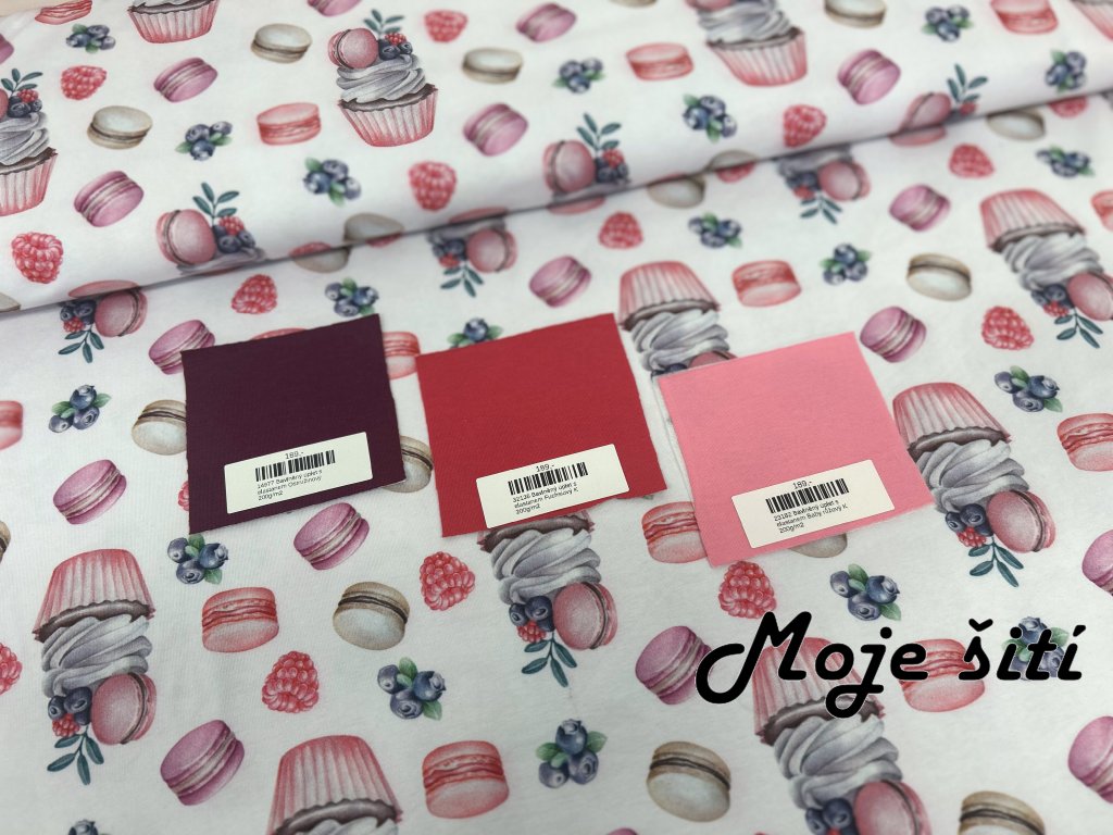 Bavlněný úplet s elastanem - Makronky 190g II. JAKOST