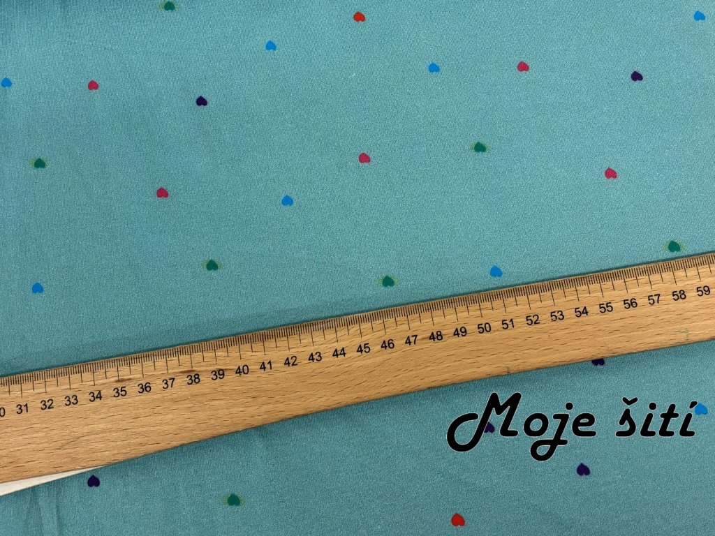Bavlněný úplet s elastanem - Malá barevná srdíčka 190g II. JAKOST