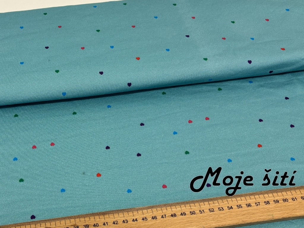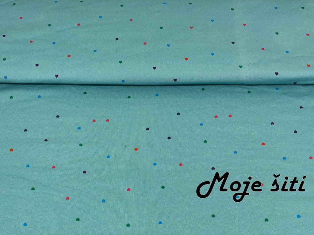 Bavlněný úplet s elastanem - Malá barevná srdíčka 190g II. JAKOST