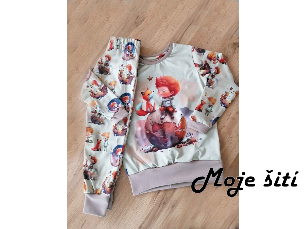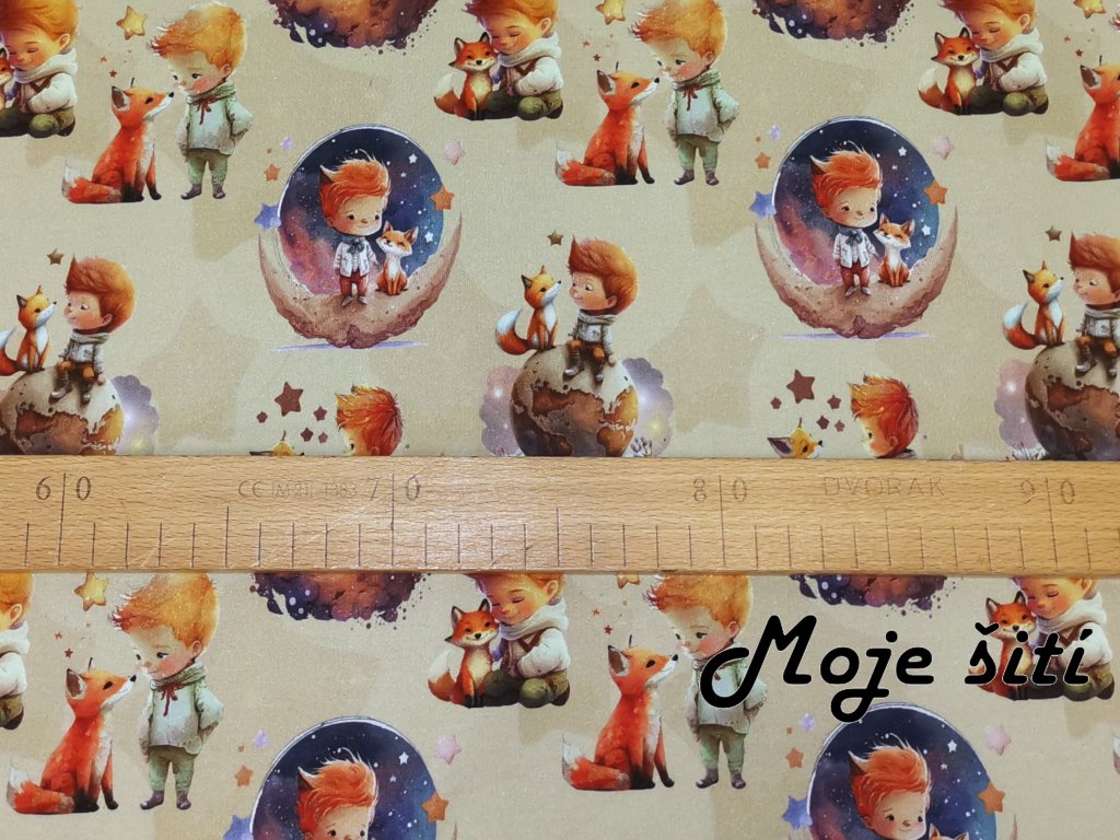 Bavlněný úplet s elastanem - Malý princ na béžové 190g