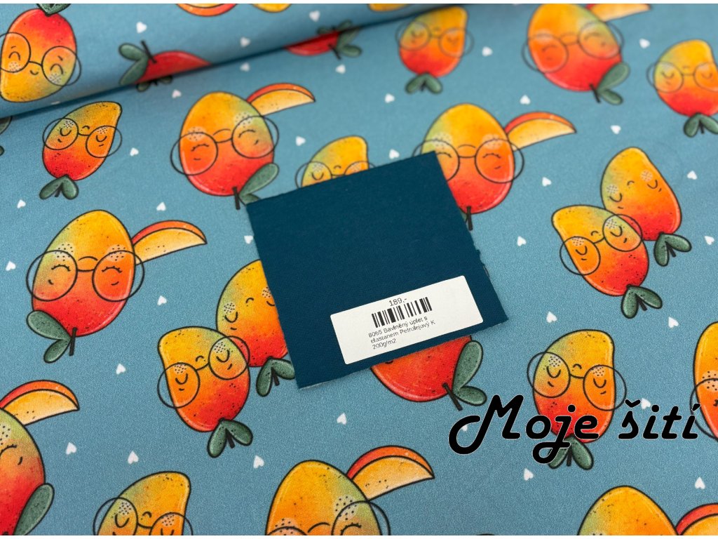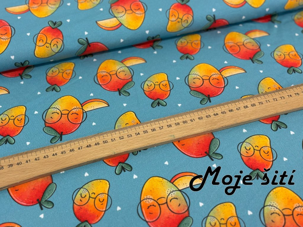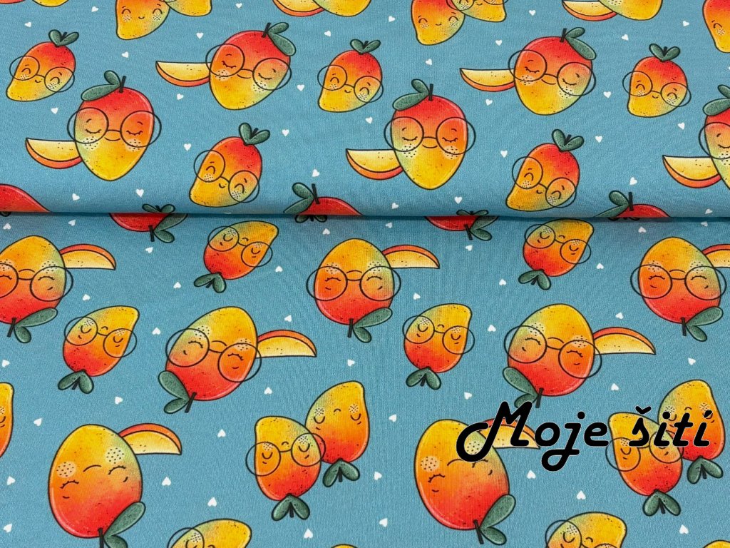 Bavlněný úplet s elastanem - Mango s brýlemi 190g