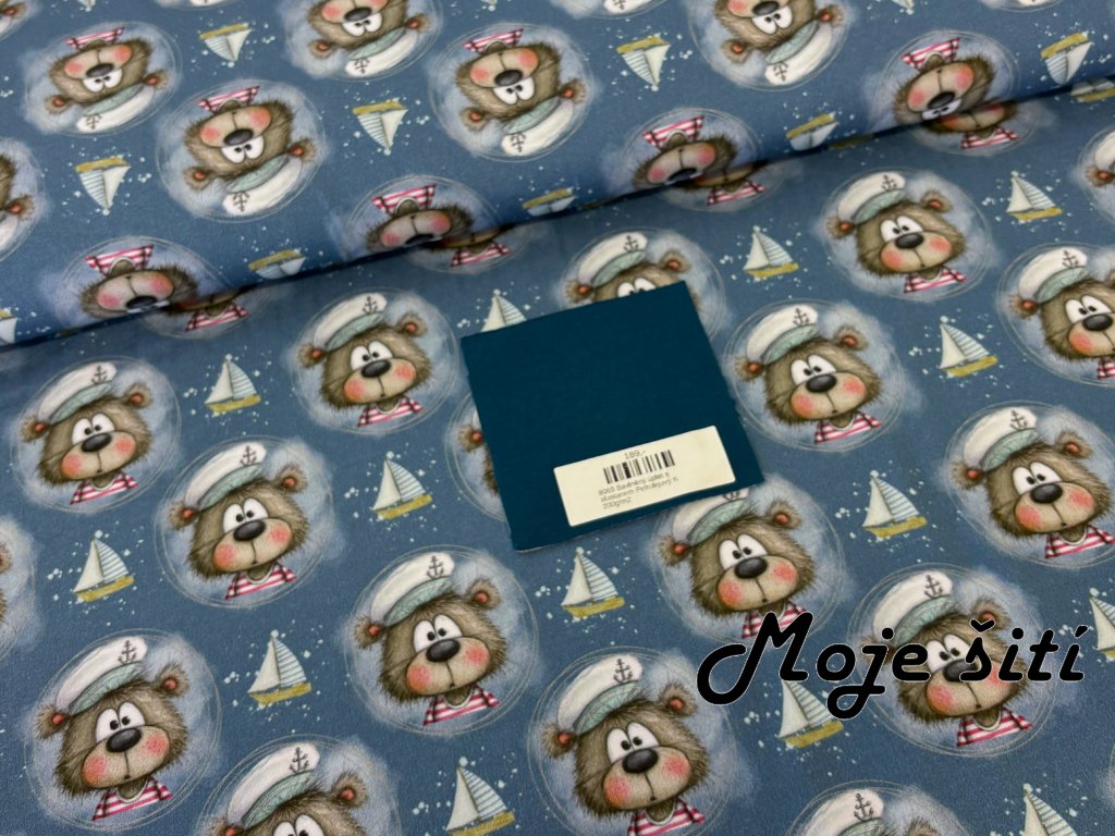 Bavlněný úplet s elastanem - Medvídek námořník 190g