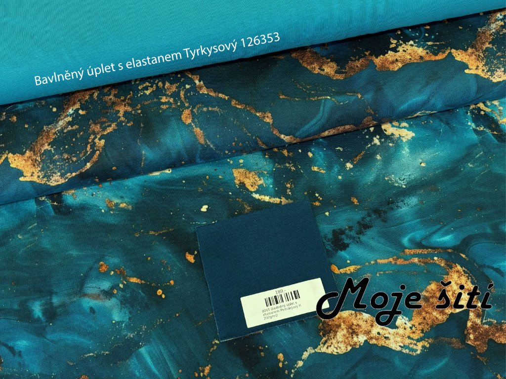 Bavlněný úplet s elastanem - Mramor modrý oceán 190g