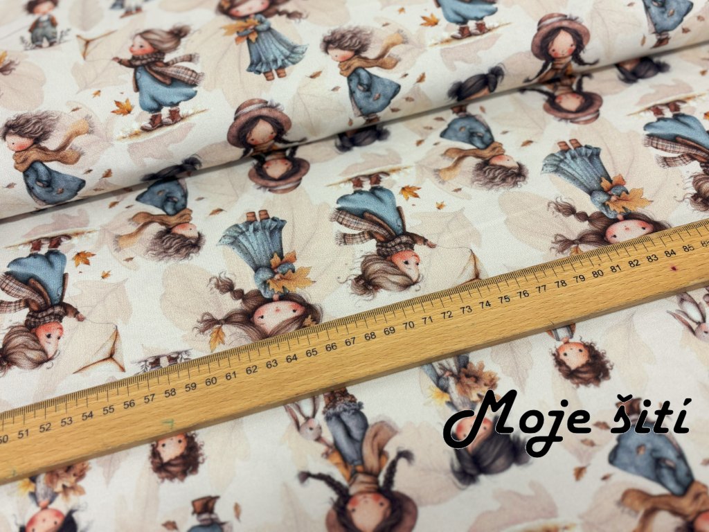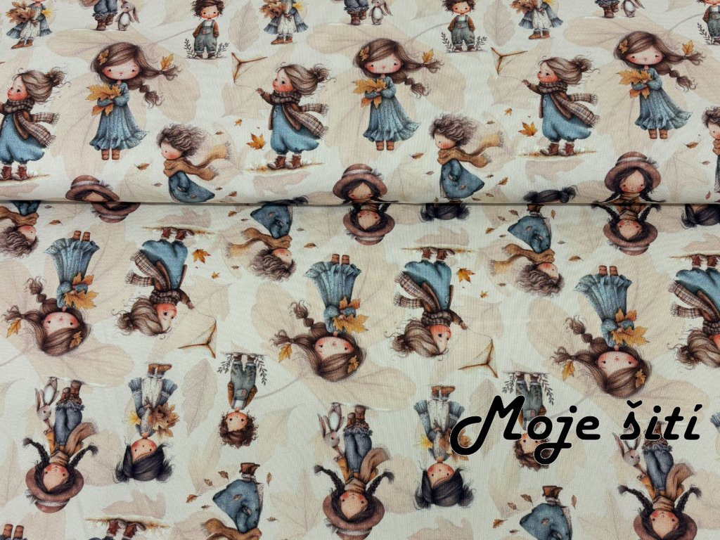 Bavlněný úplet s elastanem - Podzimní panenky 190g