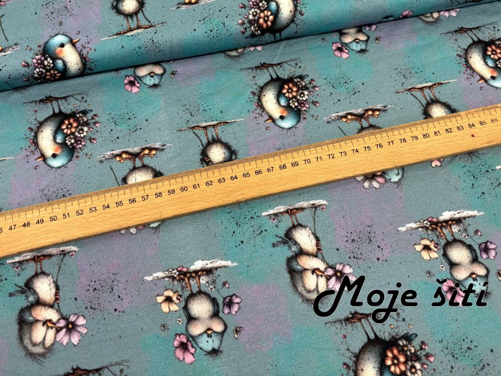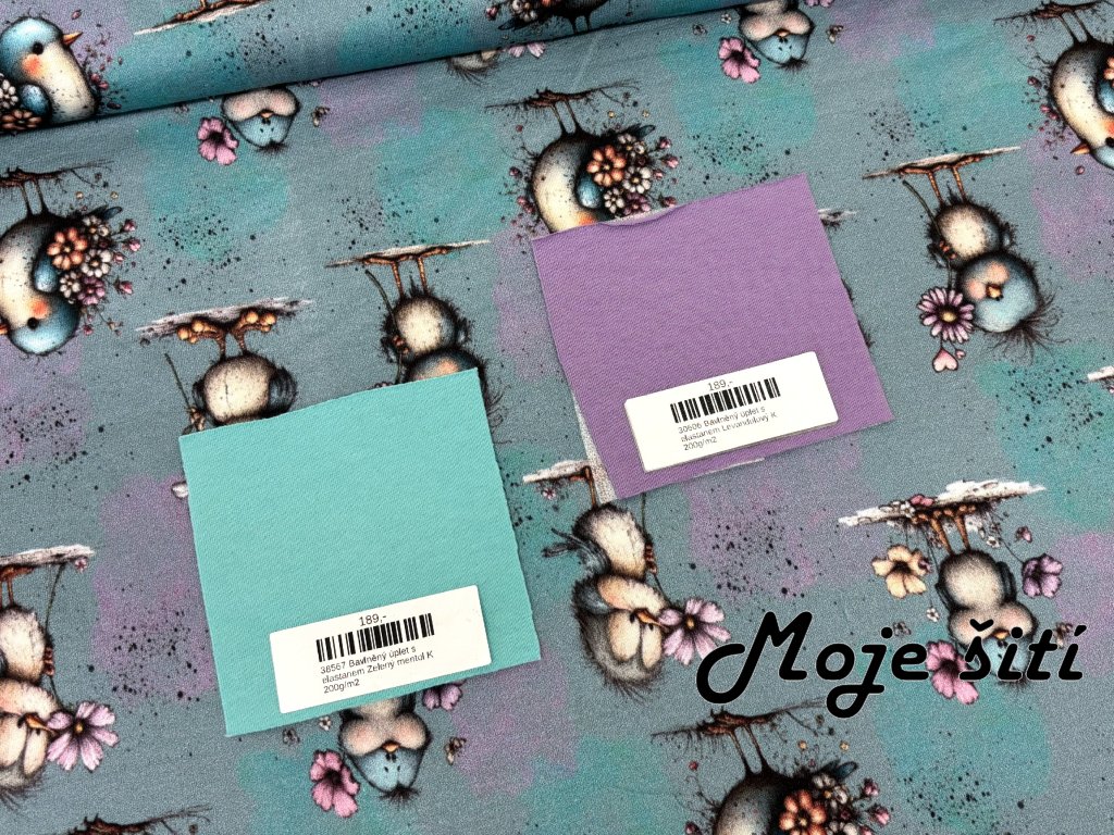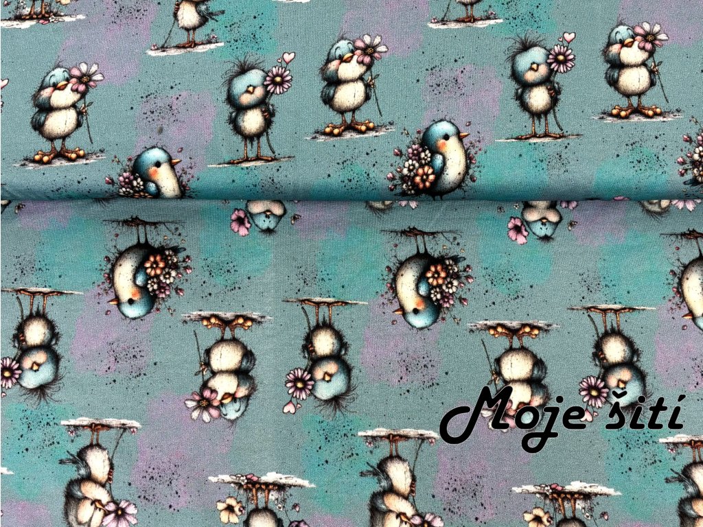 Bavlněný úplet s elastanem - Ptáčči a květinky 190g