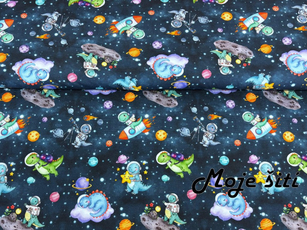Bavlněný úplet s elastanem - Pyžamkoví dinosauři 190g