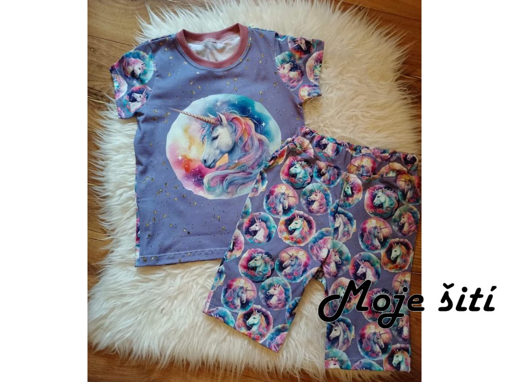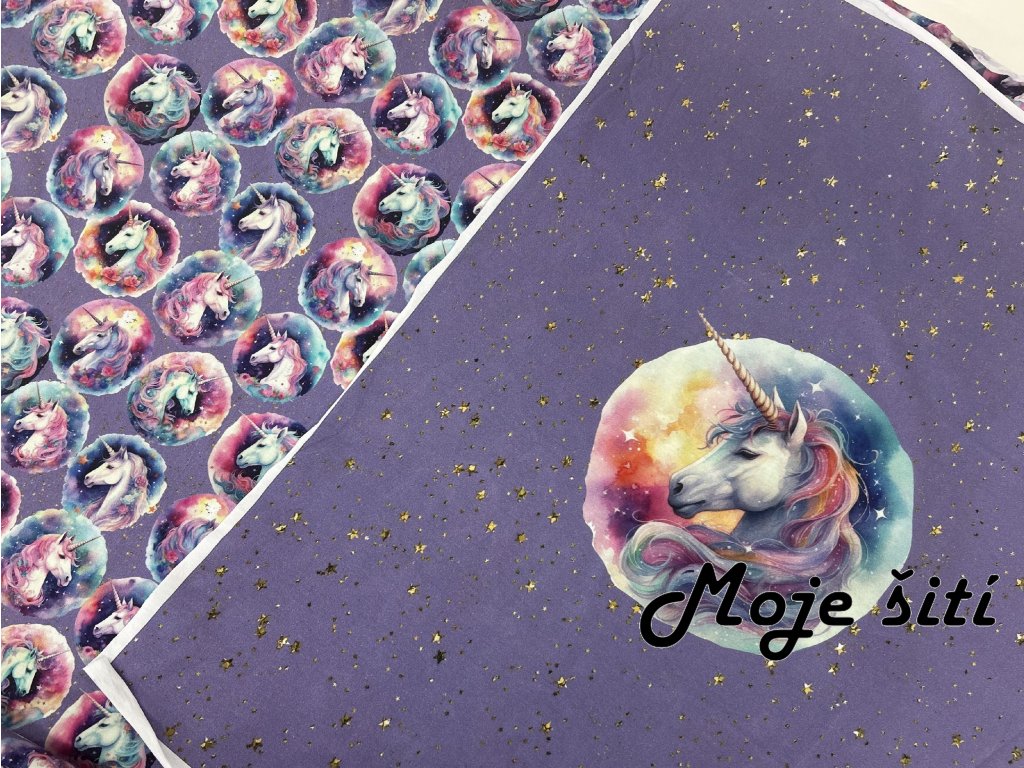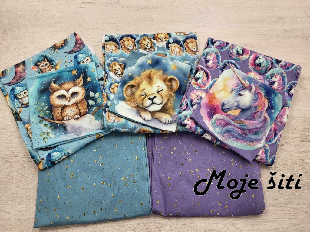 Bavlněný úplet s elastanem - Pyžamkoví jednorožci 190g