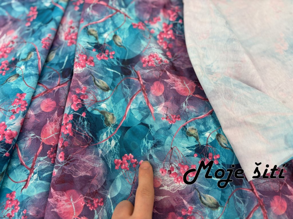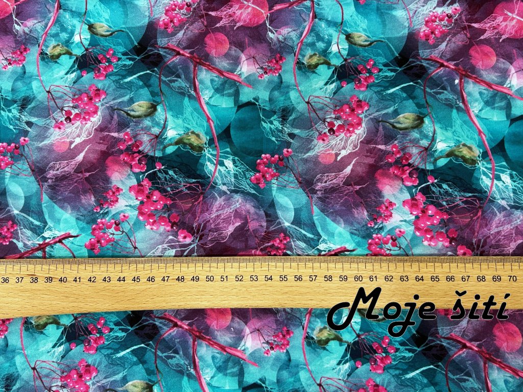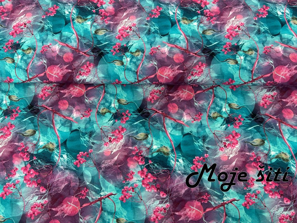 Bavlněný úplet s elastanem - Růžové jeřabiny 190g 1,5m II. JAKOST