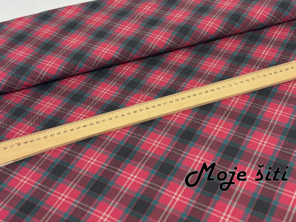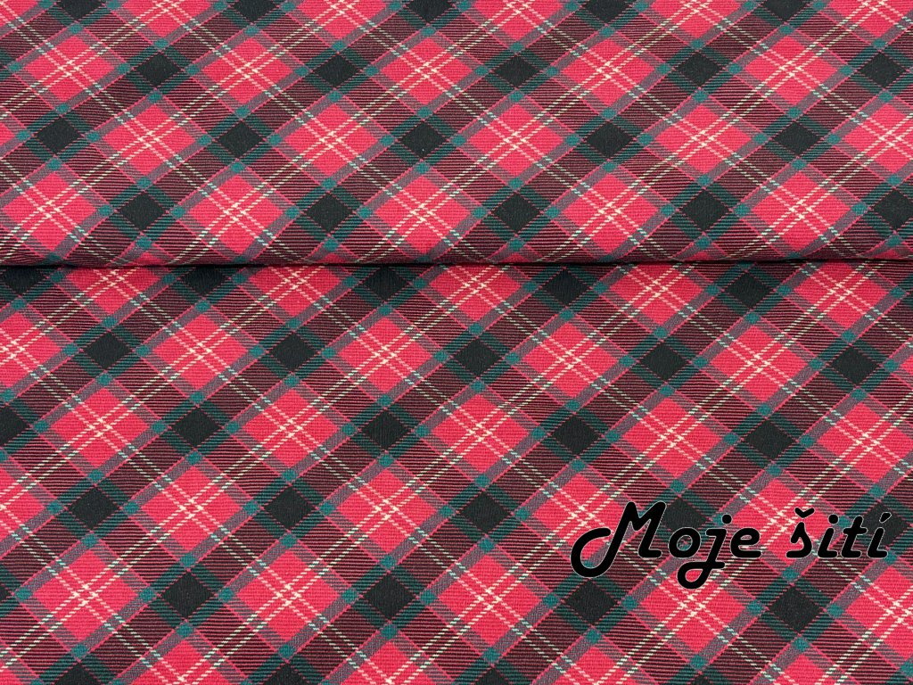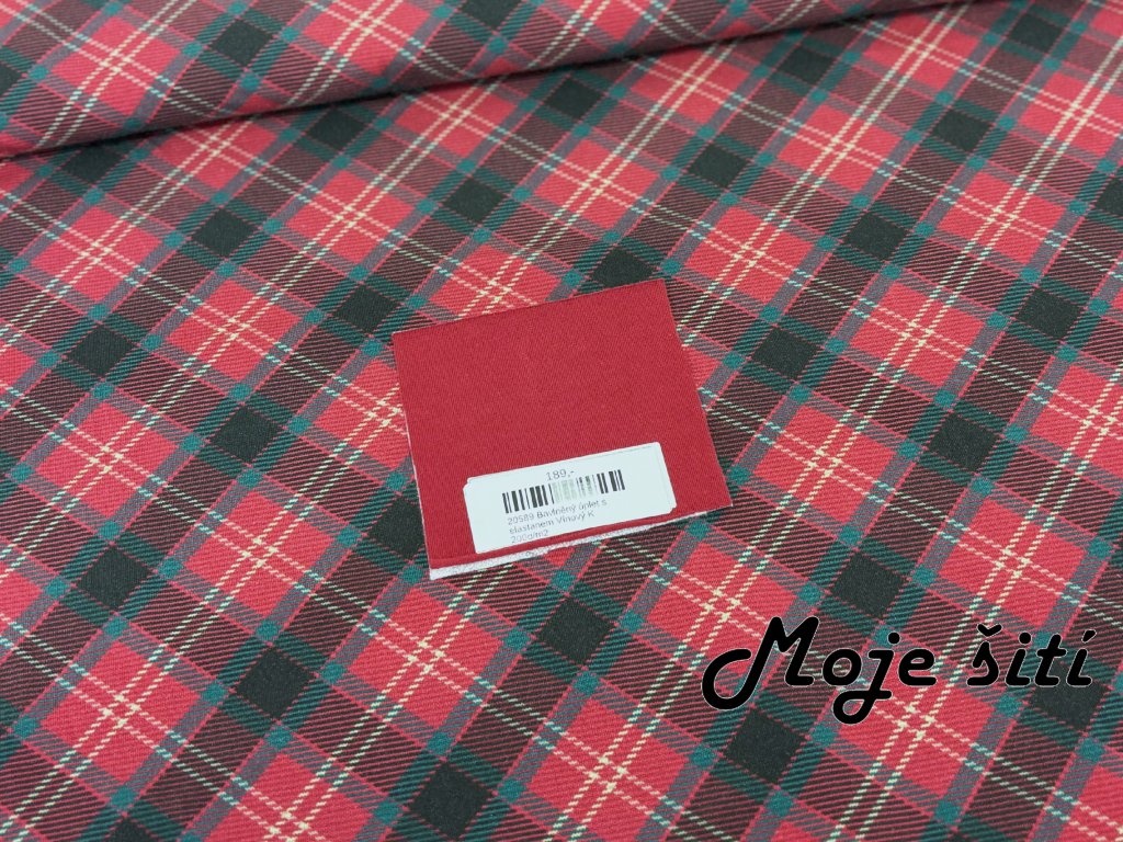 Bavlněný úplet s elastanem - Tartan vínový 190g