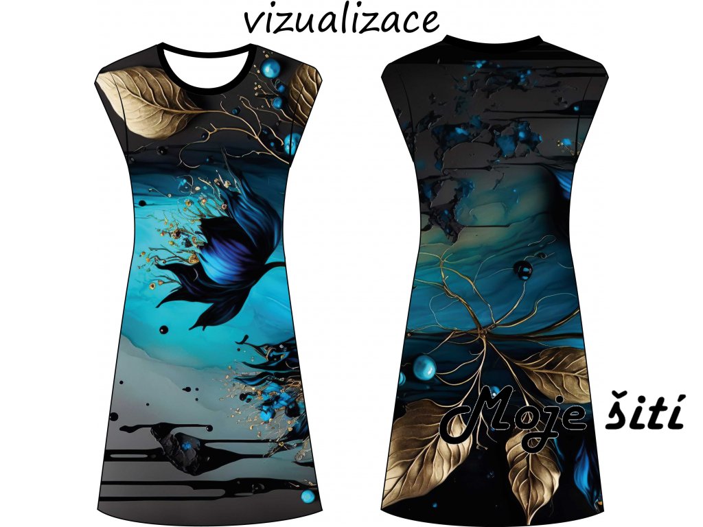 Dámský panel na šaty v plné šíři Modré květiny se zlatou 120x170