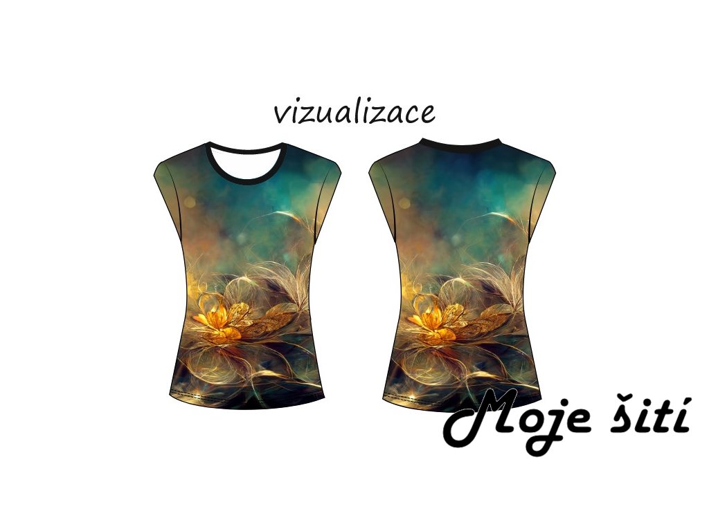 Dámský panel na tričko v plné šíři Abstraktní zlatá květina 80x165 - úplet - VADA