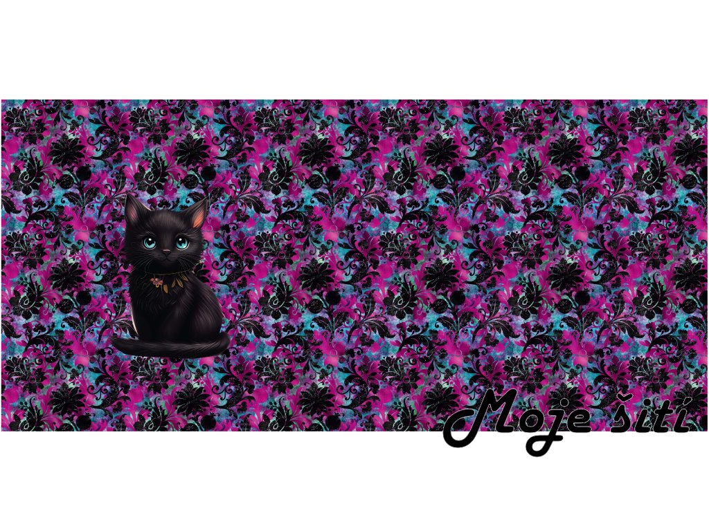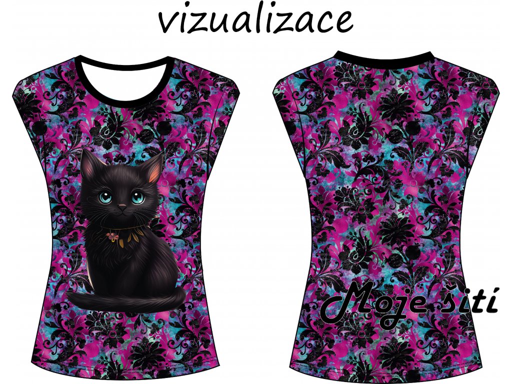 Dámský panel na tričko v plné šíři Černá kočka v baroku 80x165