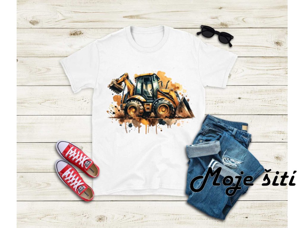 Dětské bavlněné tričko - Akvarelový žlutý bagr
