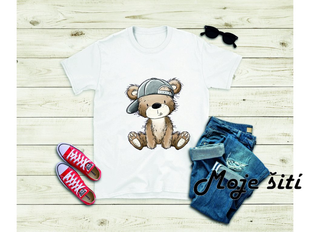 Dětské bavlněné tričko - Medvídek v kšiltovce