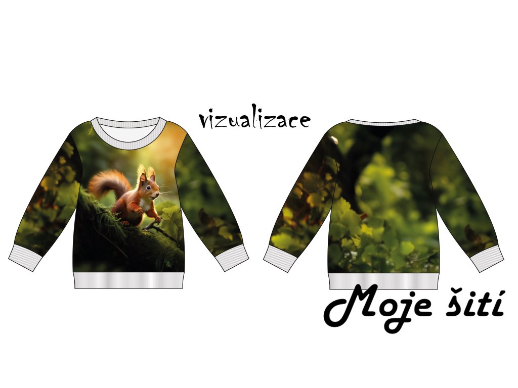 Dětský panel v plné šíři Veverka v lese 60x165 - bavln. úplet - vada
