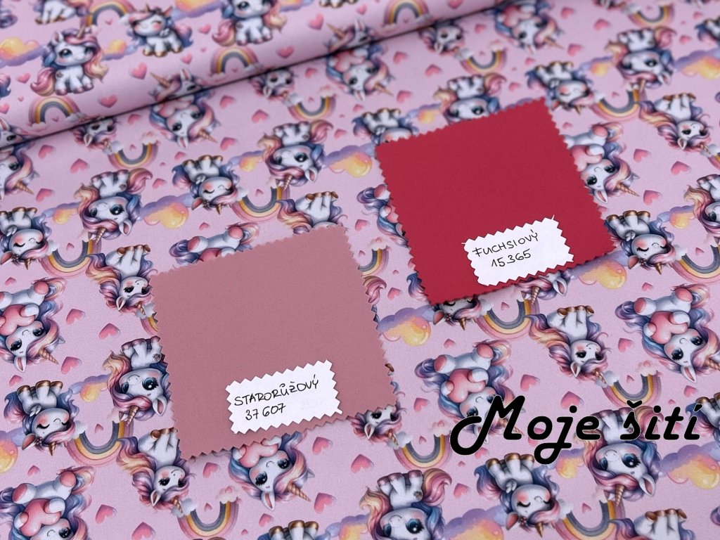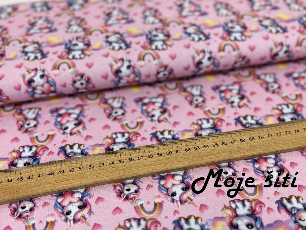 LETNÍ PRUŽNÝ Jednorožci s duhami na růžové