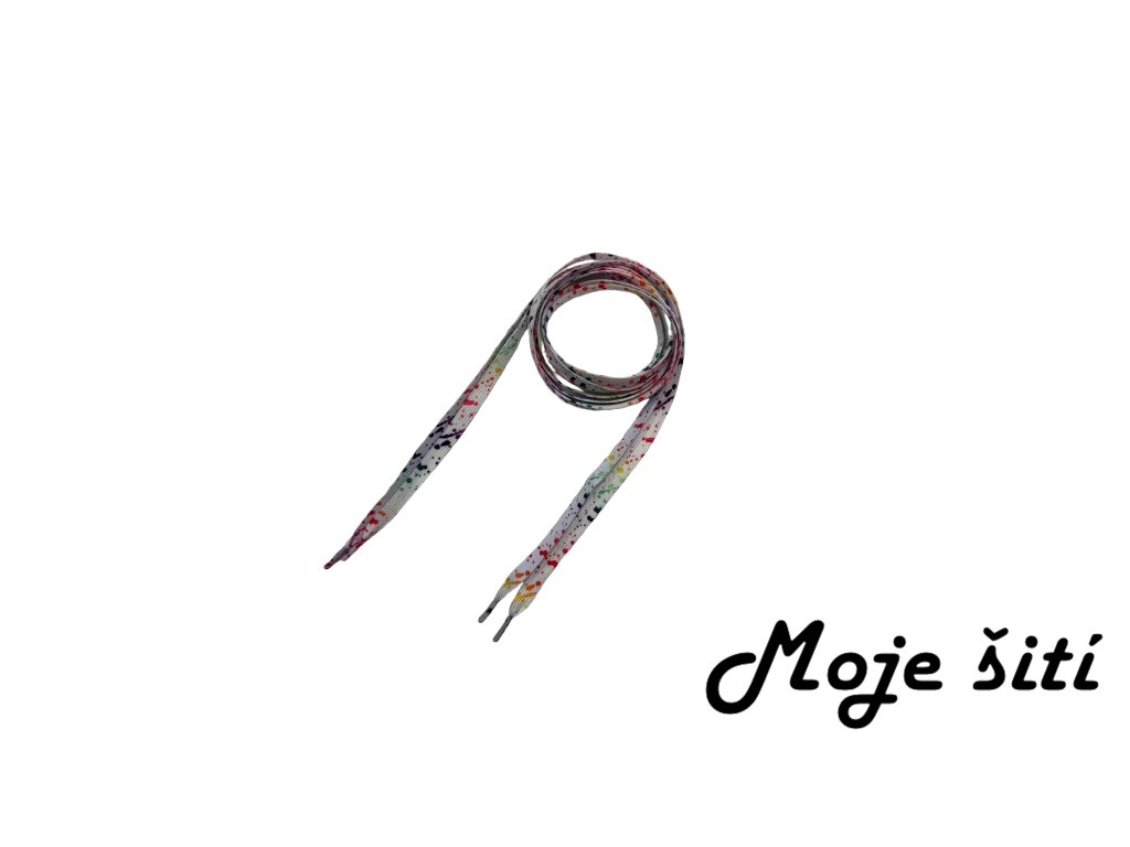 Oděvní šnůra 140 cm Bílá s barevnými cákanci
