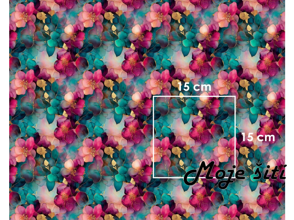 Panel na Beachule tašku - Inkoustové smaragdovo-růžové květy