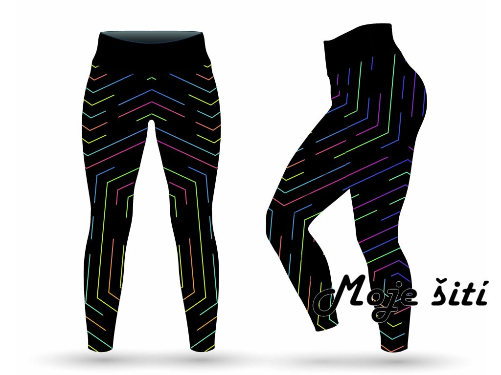 Panel na Dámské legíny ČERNÝ RUB - Barevné čáry - velikost 3XL - VADA