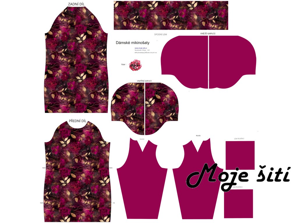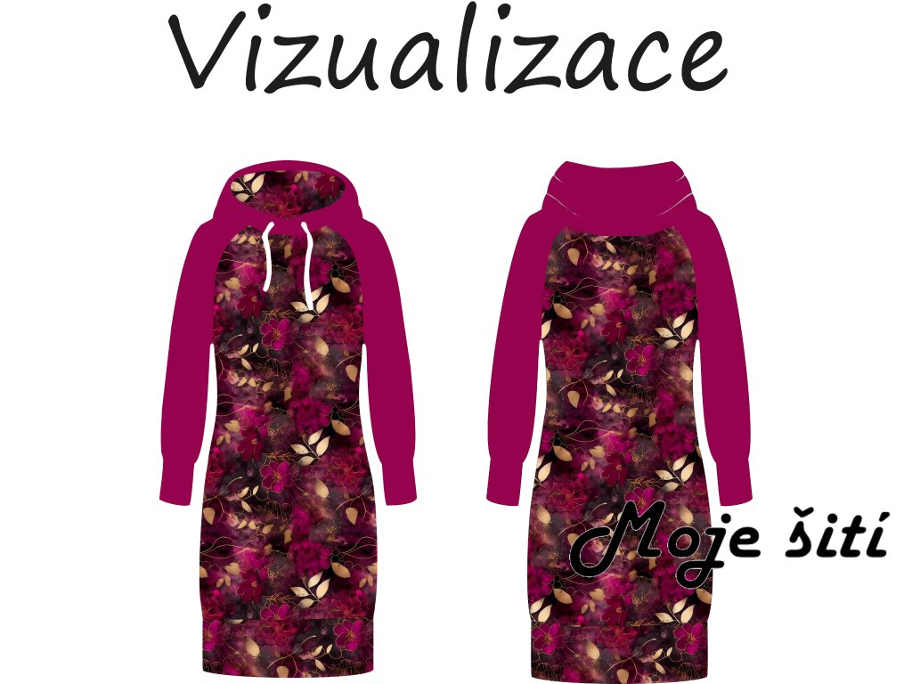 PANEL na dámské mikinošaty Květy se zlatými lístečky-vel.54-počesaná teplákovina