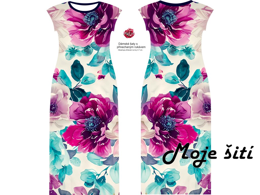 PANEL na dámské šaty EASY dlouhé Cyklámenový květ s mintovými lístky
