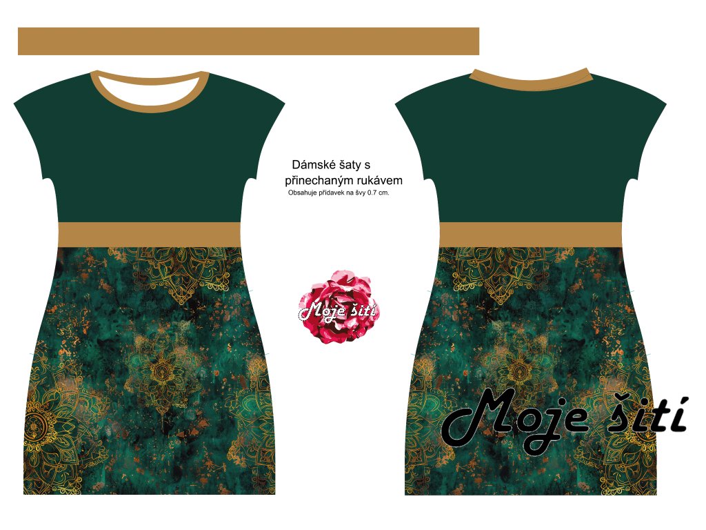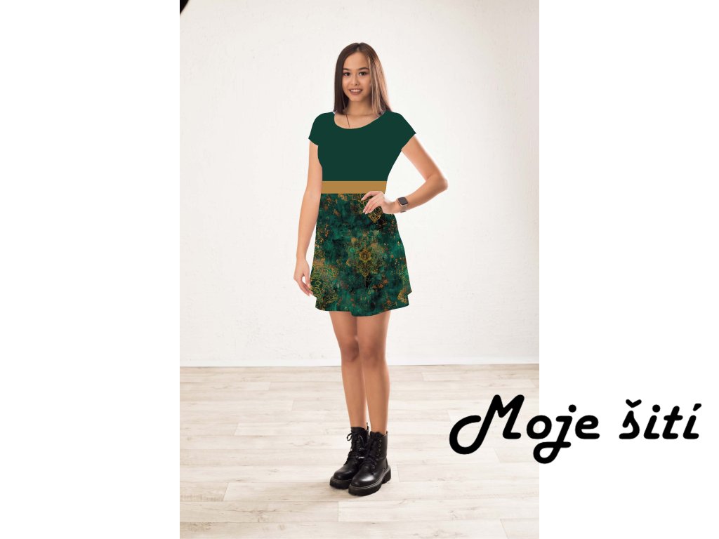 PANEL na dámské šaty EASY Zlaté mandaly na zelené