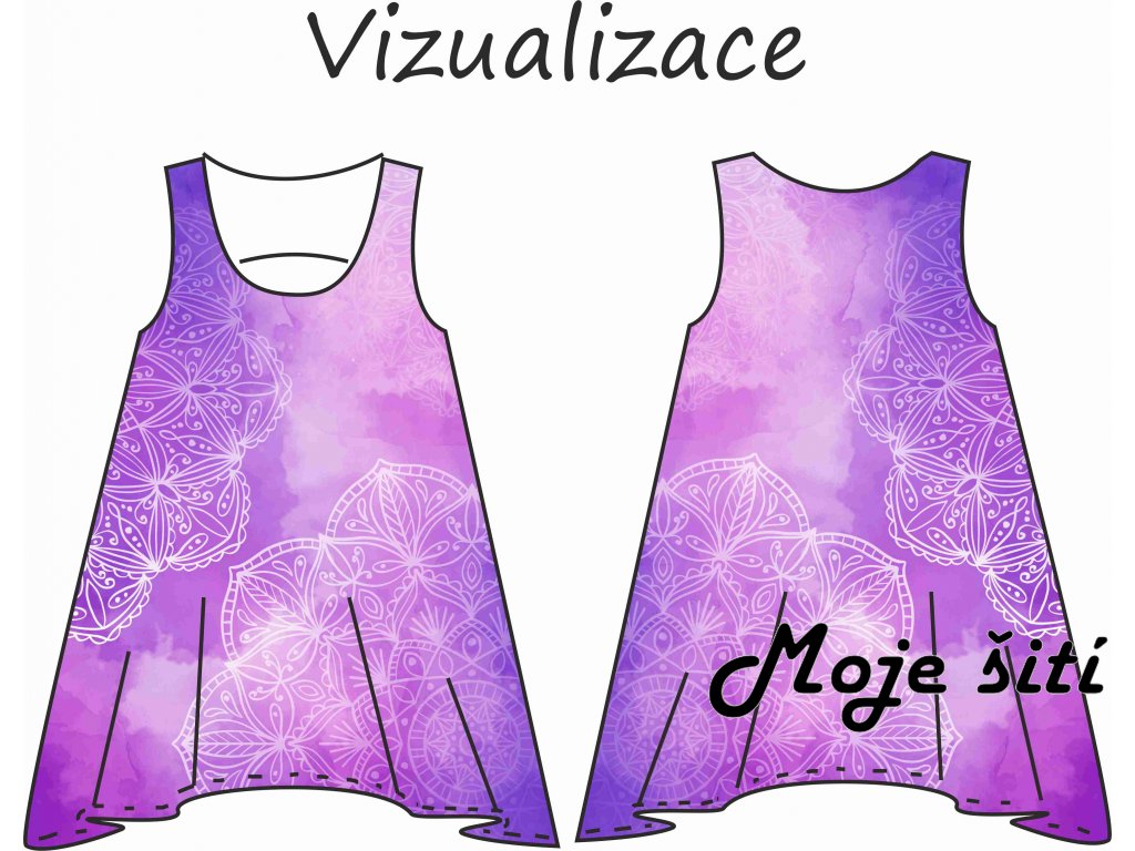 Silky - nebo-li umělé hedvábí. Velmi lehký vzdušný materiál, který si zamilujete na slunečné dny. Složení 97% polyester 3% elastan, gramáž 100g/m2. Pruží velmi málo, světlý vzor může mírně prosvítat.