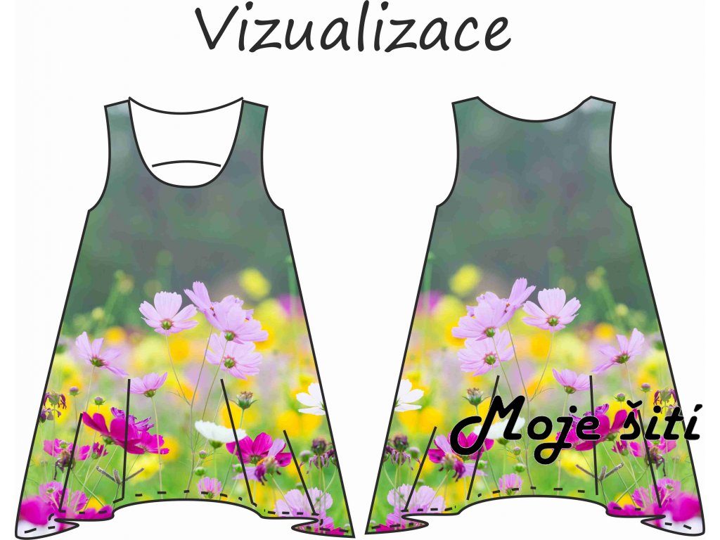 Silky - nebo-li umělé hedvábí. Velmi lehký vzdušný materiál, který si zamilujete na slunečné dny. Složení 97% polyester 3% elastan, gramáž 100g/m2. Pruží velmi málo, světlý vzor může mírně prosvítat.