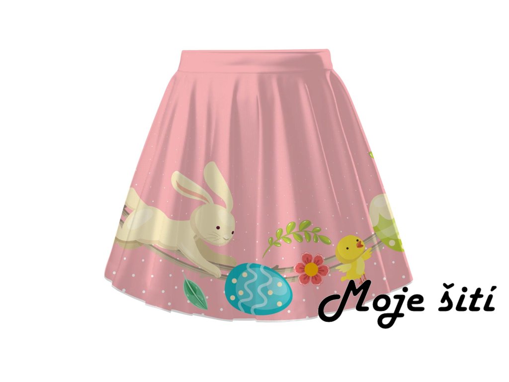 Panel na kolovou sukni Velikonoční zajíčci a kuřátka na růžové