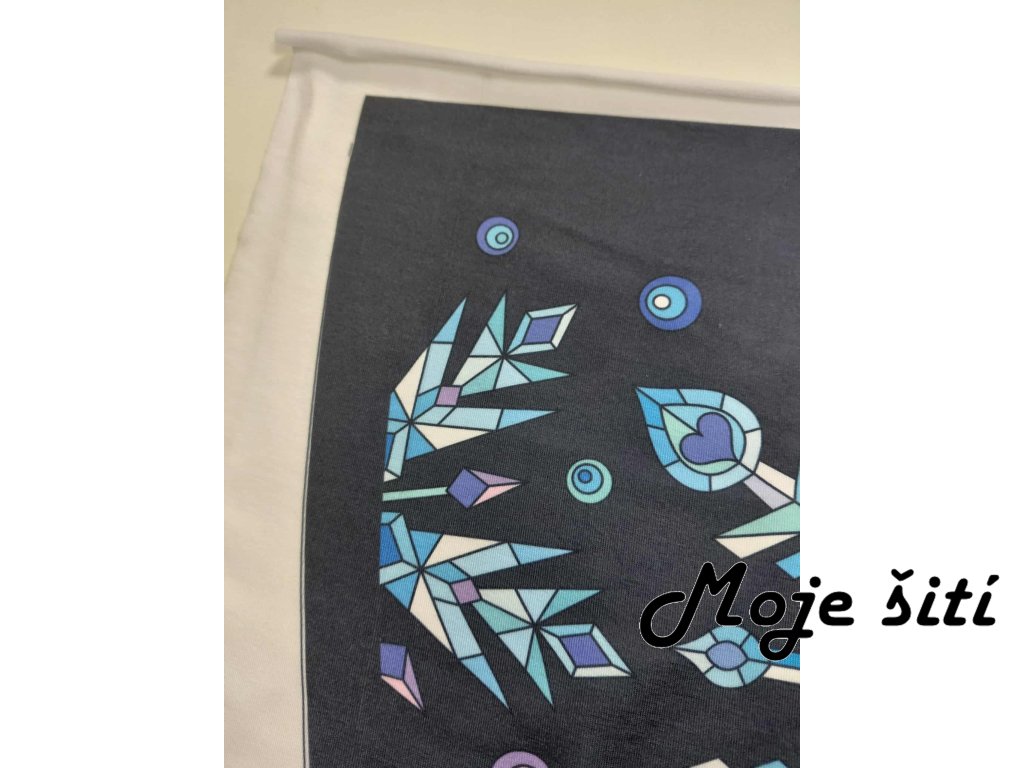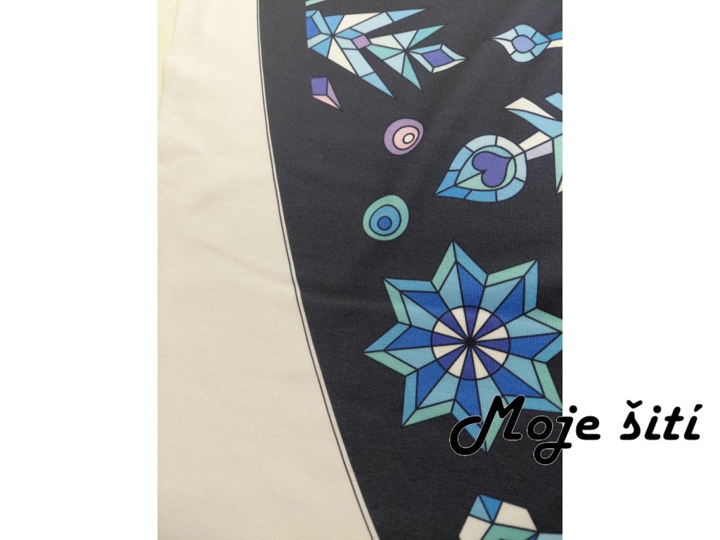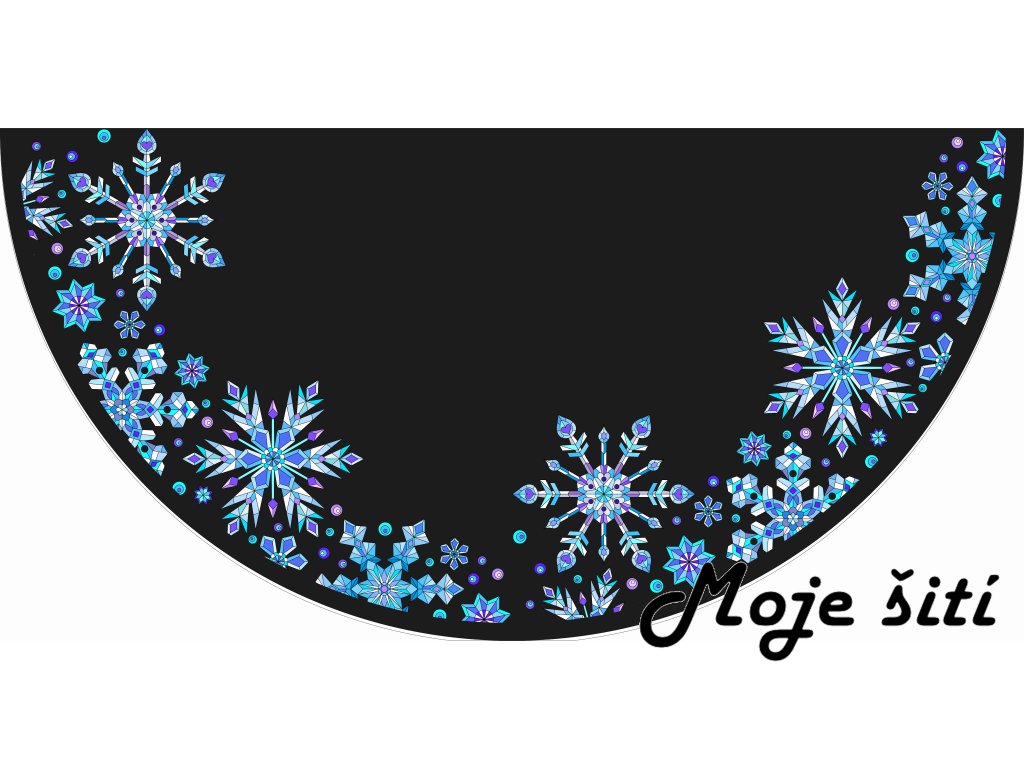 Panel na půlkolovou sukni Ledové vločky na černé-úplet cotton touch-VADA